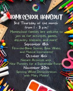 New Pioneers is excited to join the Nelson County Public Library's Homeschool Hangout on Thursday, October 16th, from 1:00 to 3:00 pm at the Main Branch!
